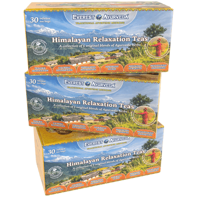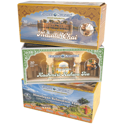 Deliciosas combinaciones de hierbas y especias ayurvédicas en tés relajantes son bebidas saludables y refrescantes tanto en el trabajo en la oficina, cuando estimulan el cuerpo, refrescan la mente y benefician la buena digestión, como sirven como sabrosas bebidas para la regeneración de la condición mental y física después del trabajo, cuando promueven la relajación necesaria y la restauración de la fuerza mental del cuerpo.